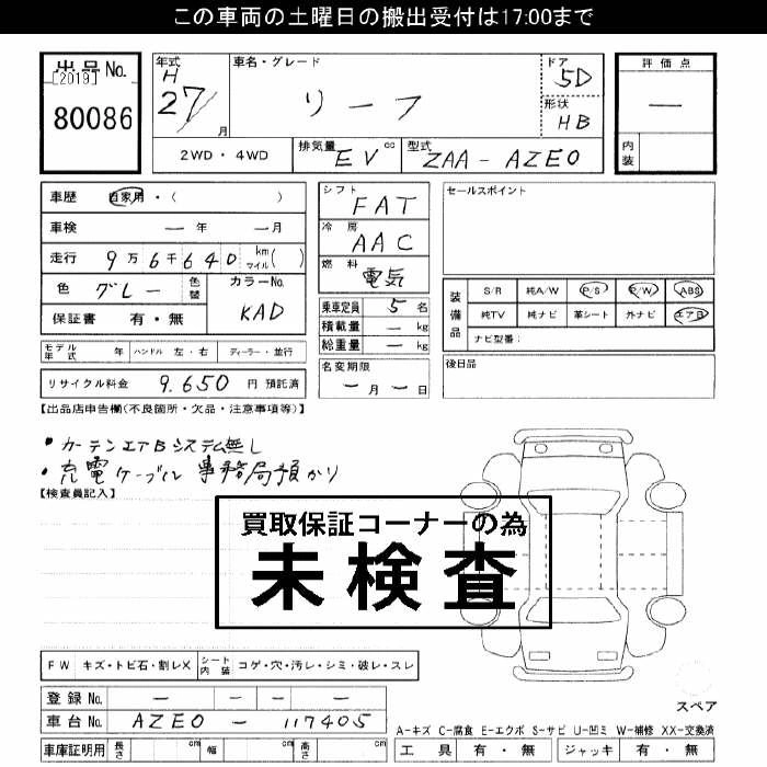NISSAN LEAF 2015 г., лот № 80086