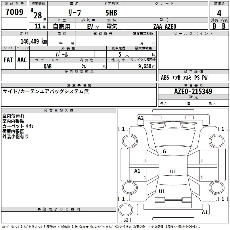 NISSAN LEAF 2016 г., лот № 7009