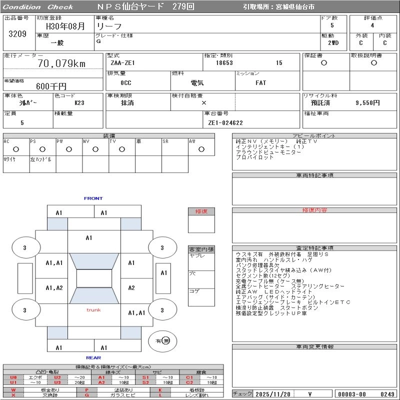 NISSAN LEAF 2018 г., лот № 3209