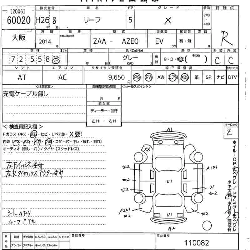 NISSAN LEAF 2014 г., лот № 60020