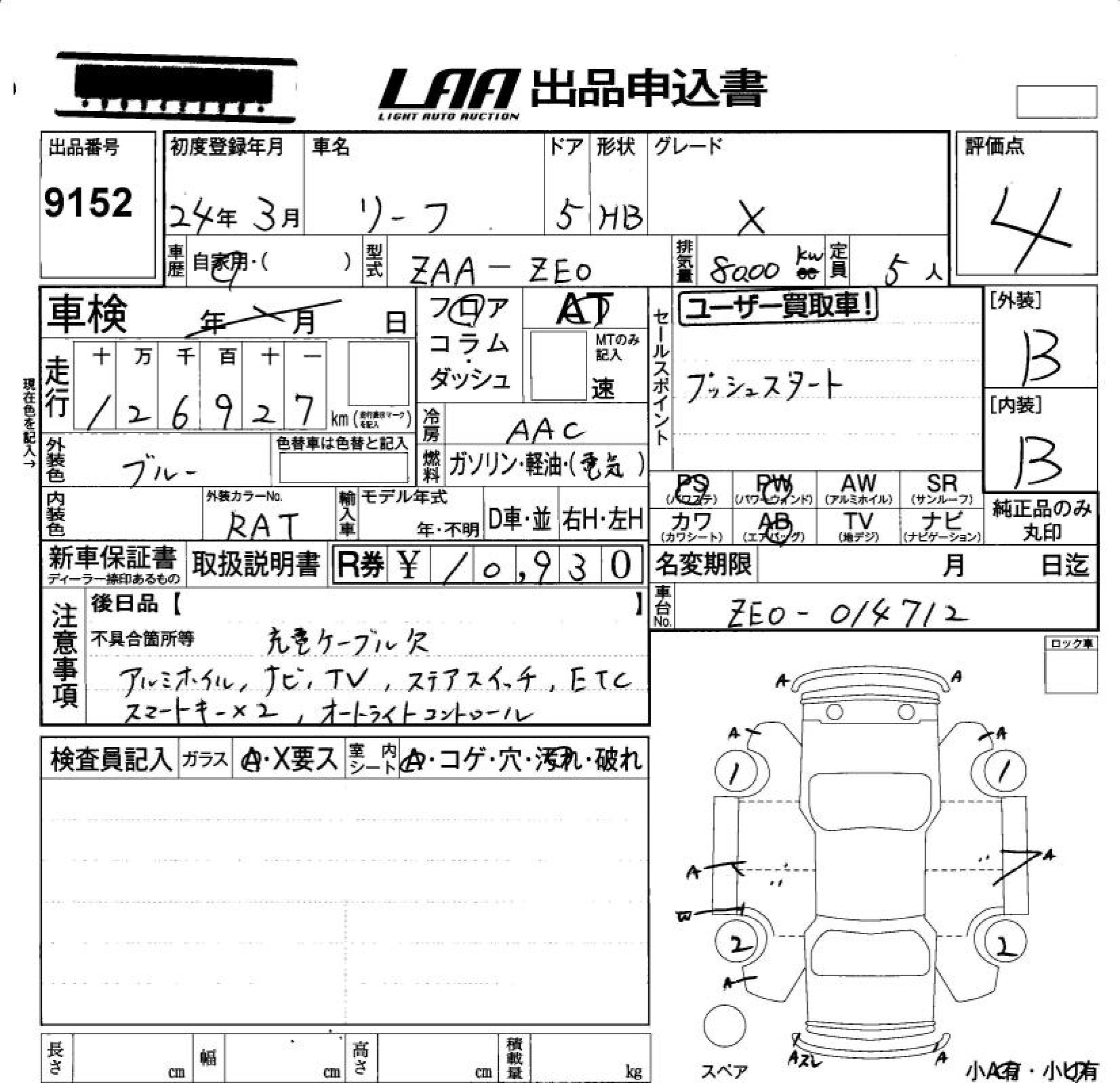 NISSAN LEAF 2012 г., лот № 9152
