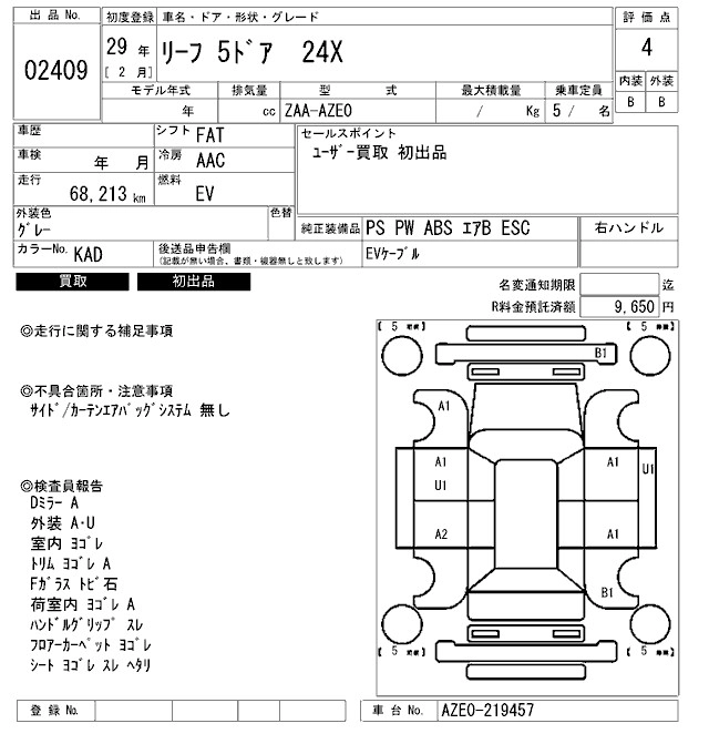 NISSAN LEAF 2017 г., лот № 2409