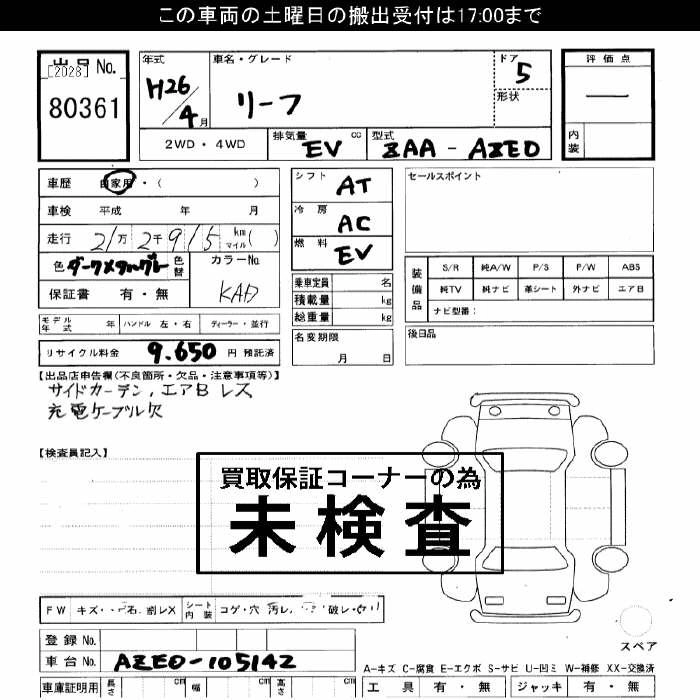 NISSAN LEAF 2014 г., лот № 80361