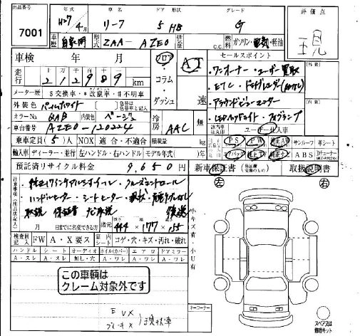 Стартовая цена авто на аукционе 0 ¥