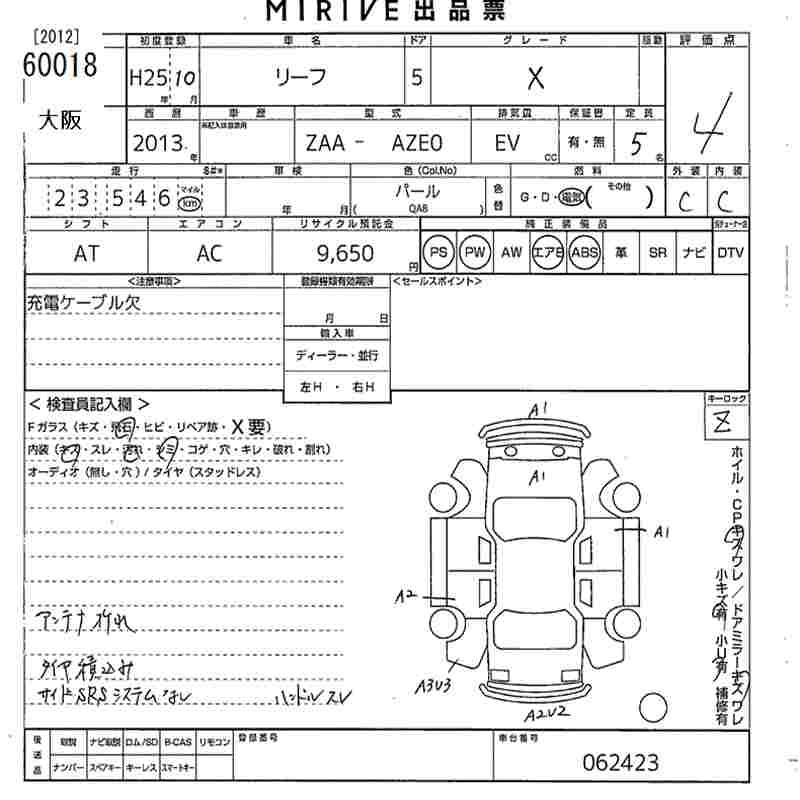 NISSAN LEAF 2013 г., лот № 60018