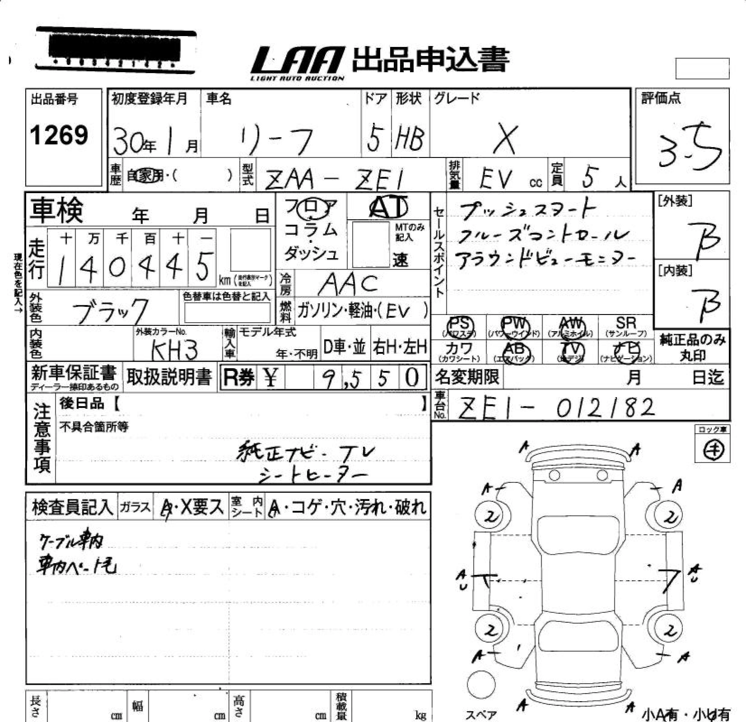 NISSAN LEAF 2018 г., лот № 1269