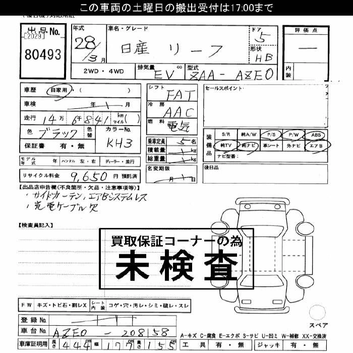 NISSAN LEAF 2016 г., лот № 80493