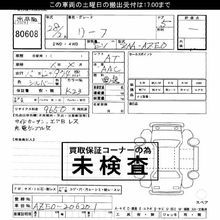 NISSAN LEAF 2016 г., лот № 80608