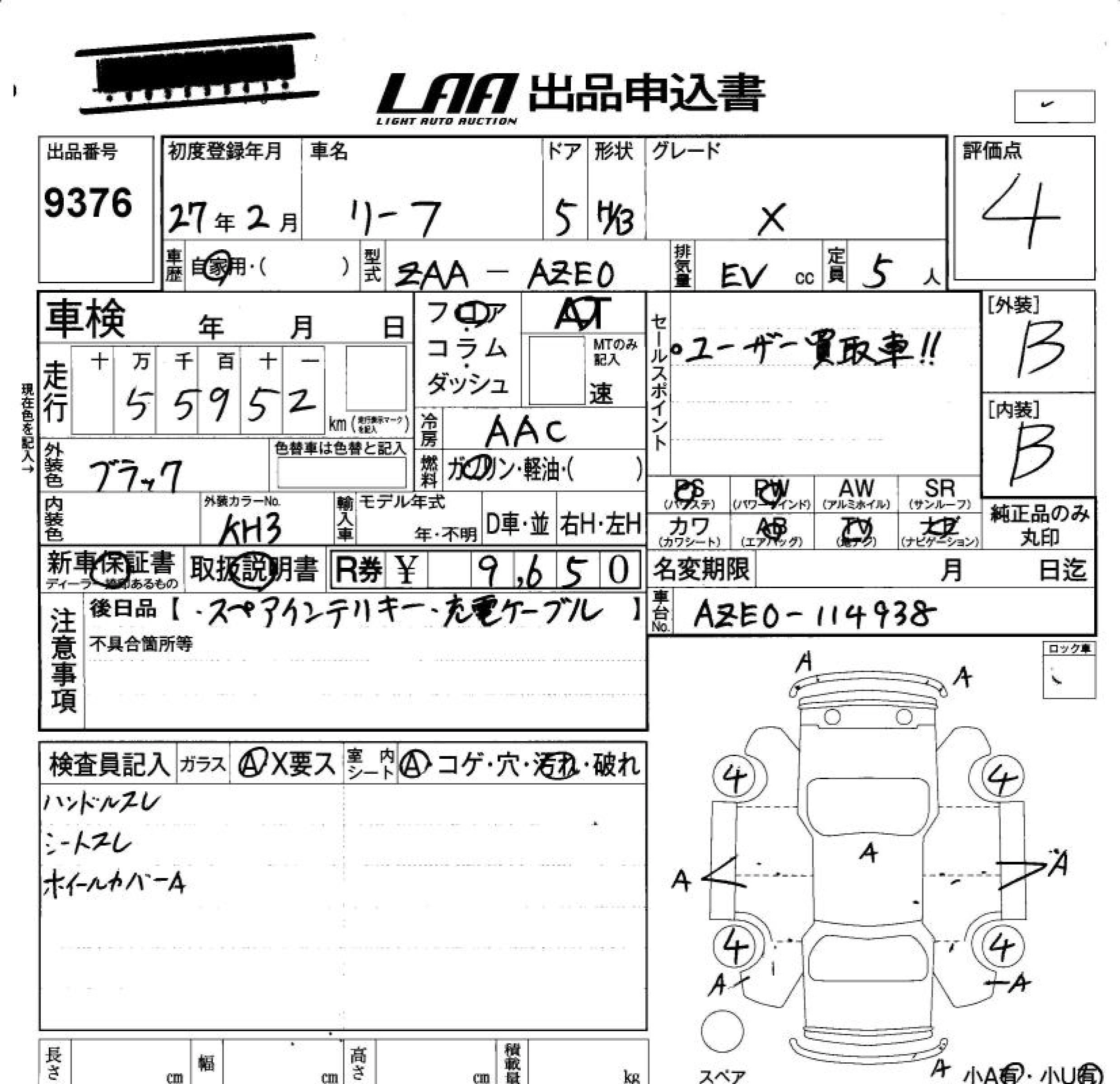 NISSAN LEAF 2015 г., лот № 9376