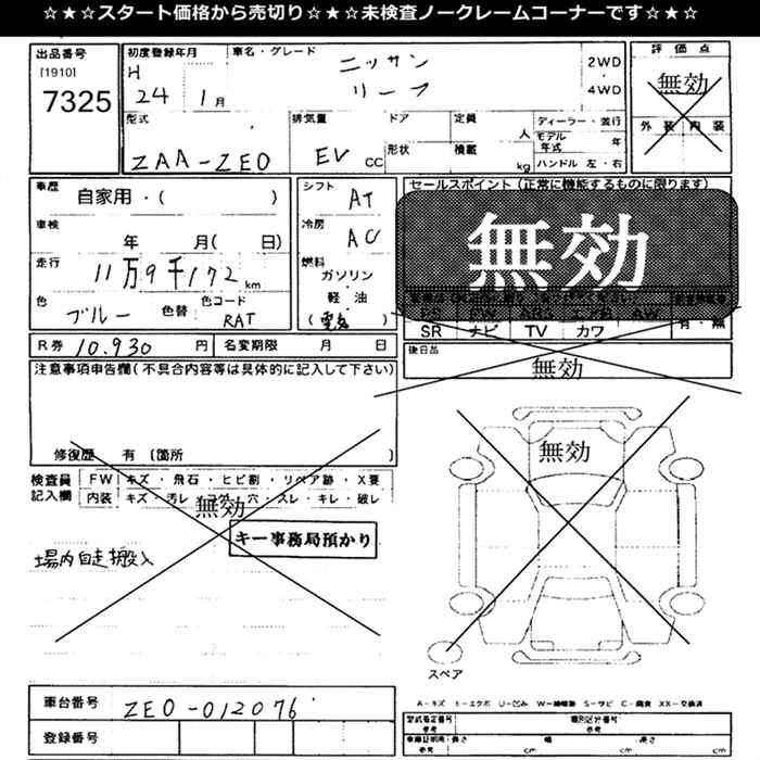 NISSAN LEAF 2012 г., лот № 7325