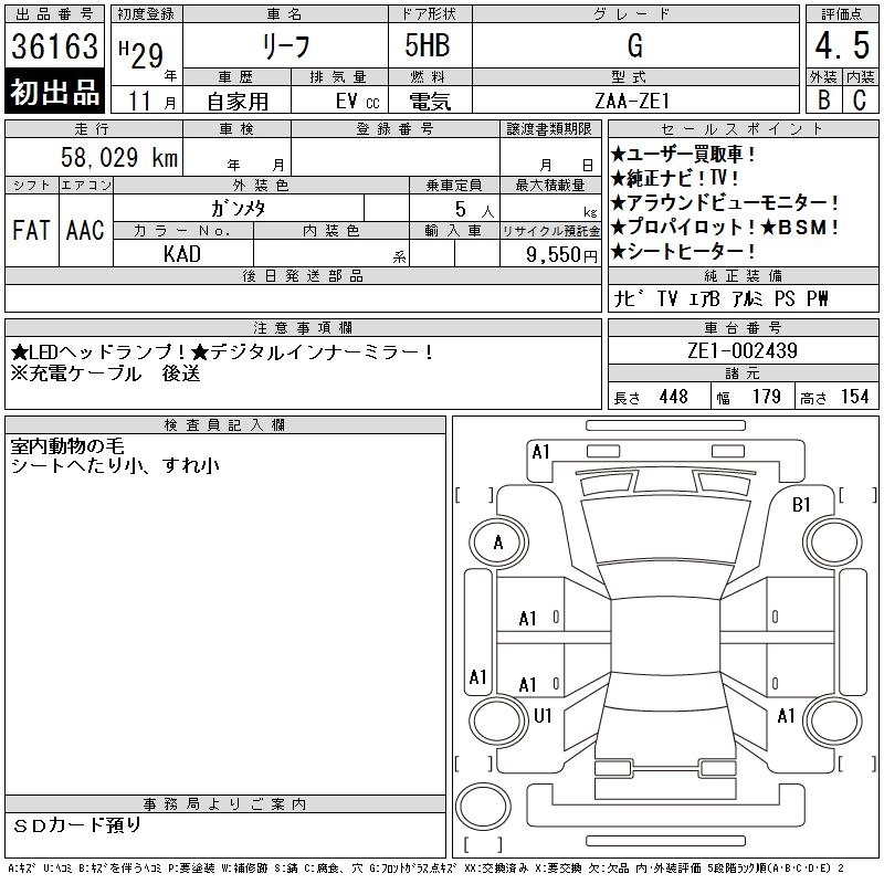 NISSAN LEAF 2017 г., лот № 36163