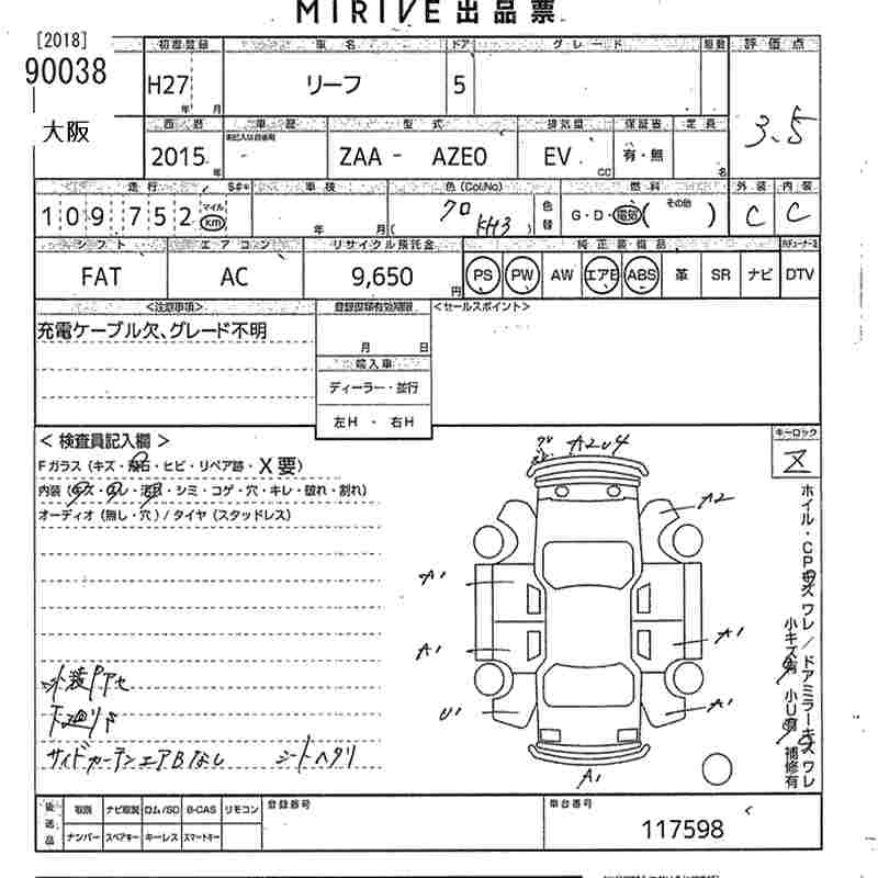 NISSAN LEAF 2015 г., лот № 90038