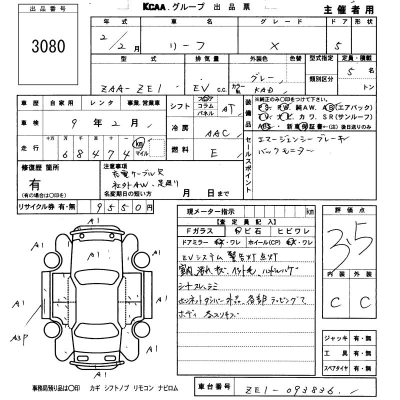 NISSAN LEAF 2020 г., лот № 3080