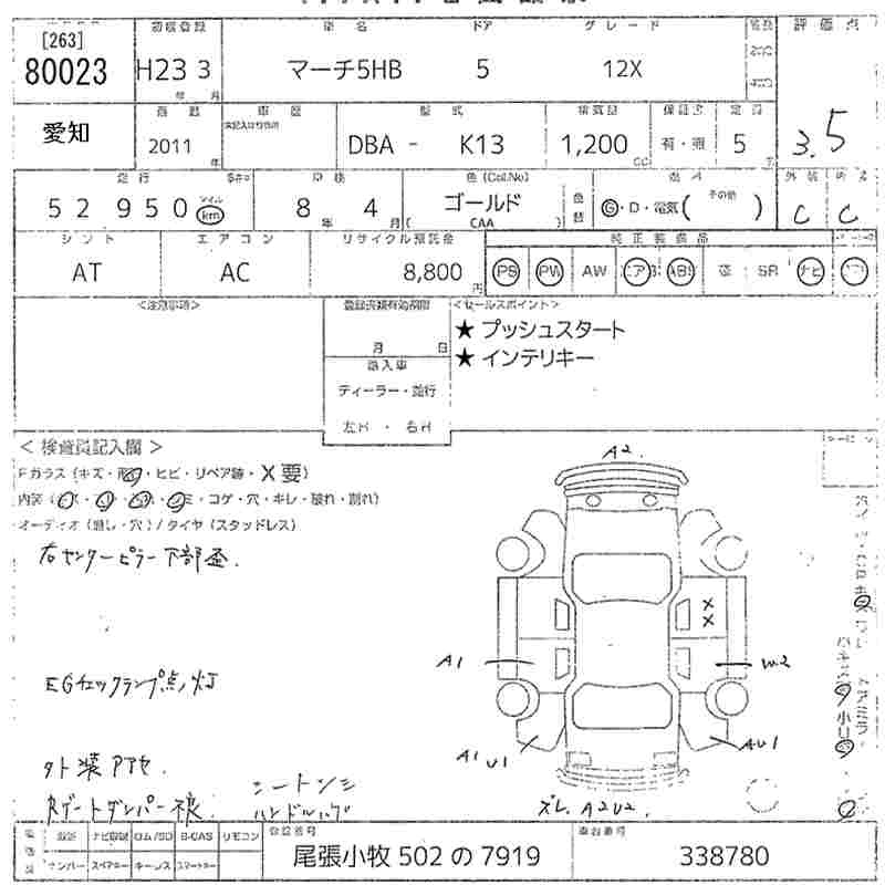 NISSAN MARCH 2011 г., лот № 80023