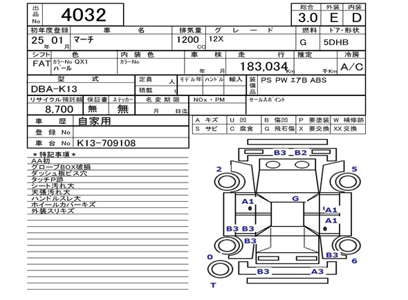NISSAN MARCH 2013 г., лот № 4032