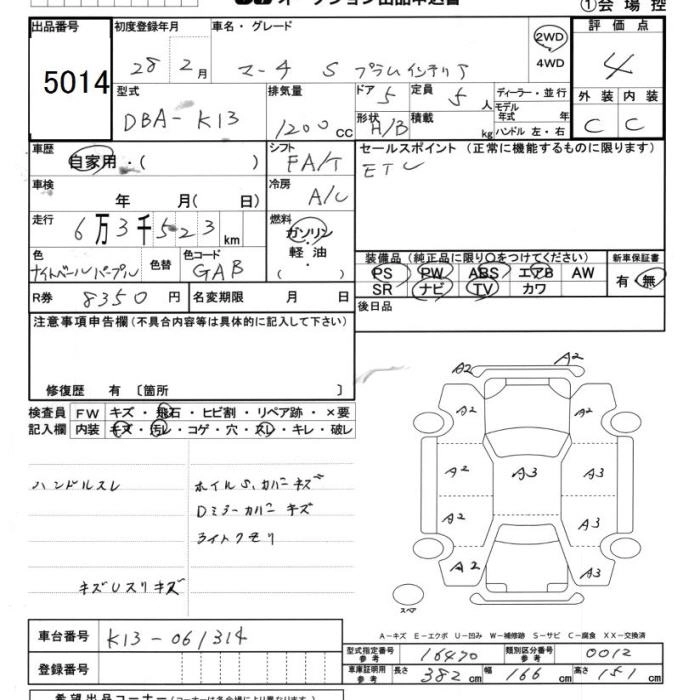 NISSAN MARCH 2016 г., лот № 5014