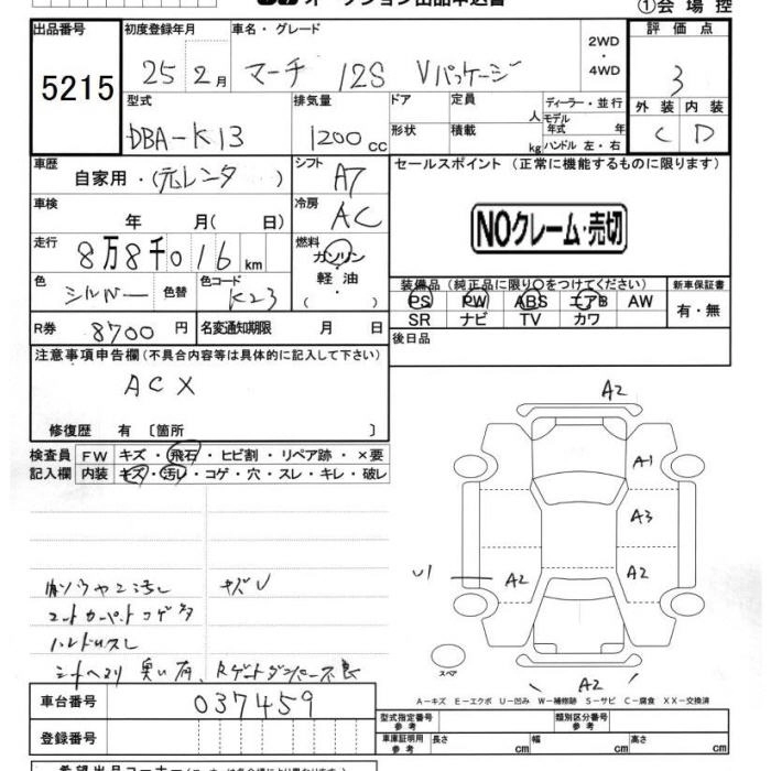 NISSAN MARCH 2013 г., лот № 5215