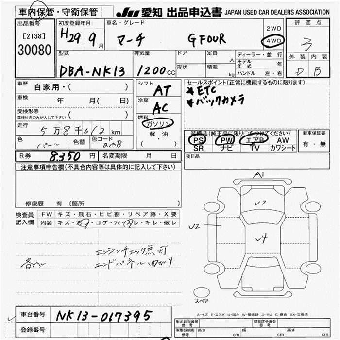 NISSAN MARCH 2017 г., лот № 30080