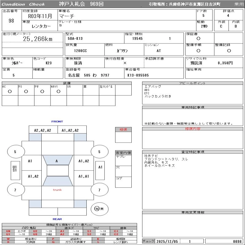 Статус выставлен на аукцион Лот 98 Аукцион ORIX Kobe Дата аукциона 09.12.2025