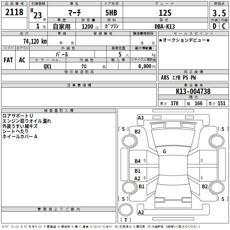 Год выпуска2011 Пробег 74 000 км КузовK13 Комплектация12S