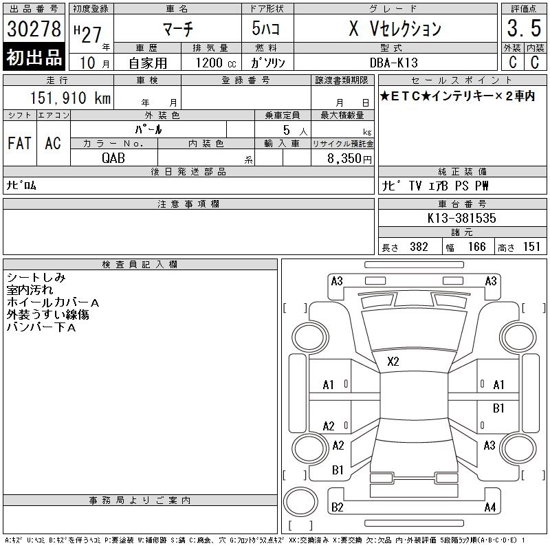 NISSAN MARCH 2015 г., лот № 30278