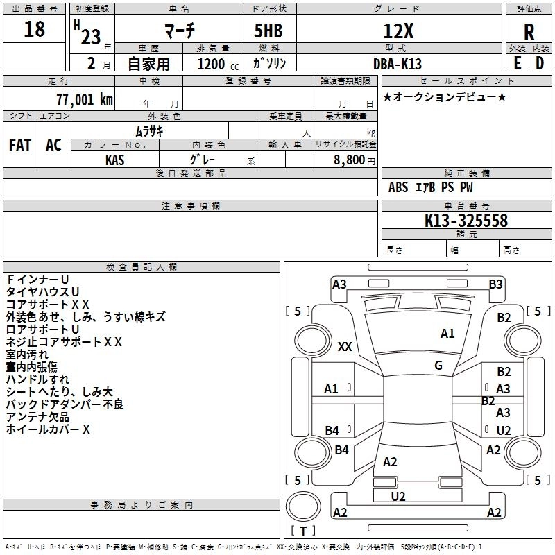 Год выпуска2011 Пробег 77 000 км КузовK13 Комплектация12X