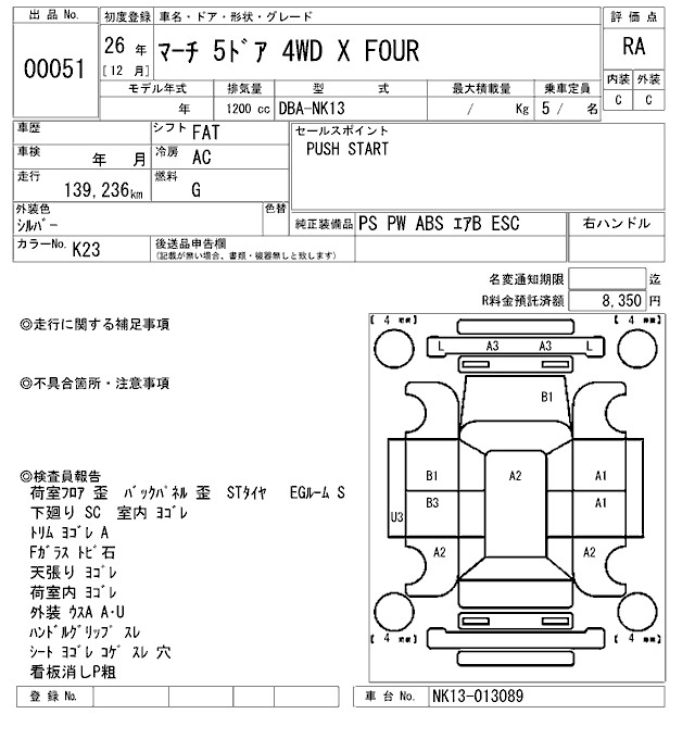 NISSAN MARCH 2014 г., лот № 51