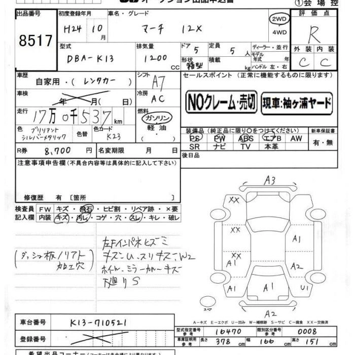 NISSAN MARCH 2012 г., лот № 8517