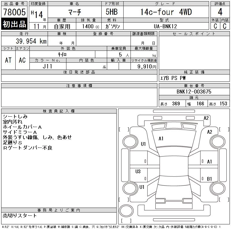 NISSAN MARCH 2002 г., лот № 78005
