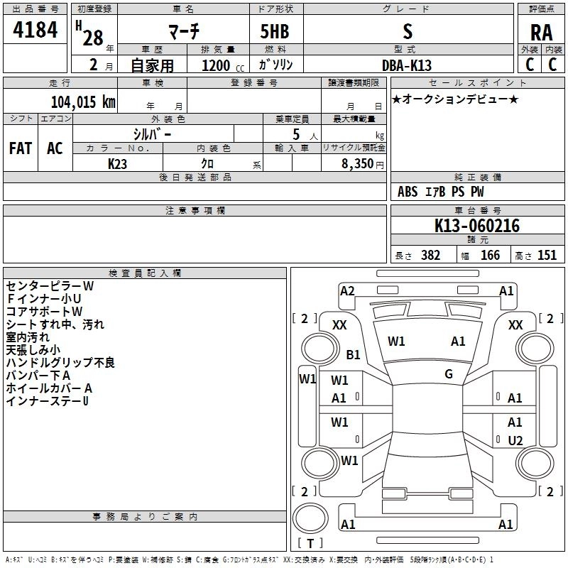 NISSAN MARCH 2016 г., лот № 4184