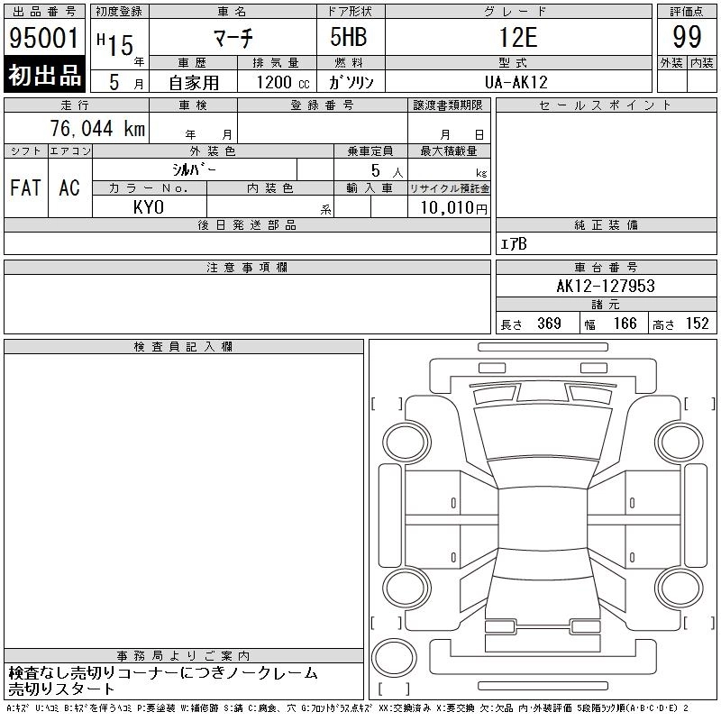 Статус продан Лот 95001 Аукцион CAA Chubu Дата аукциона 28.01.2026