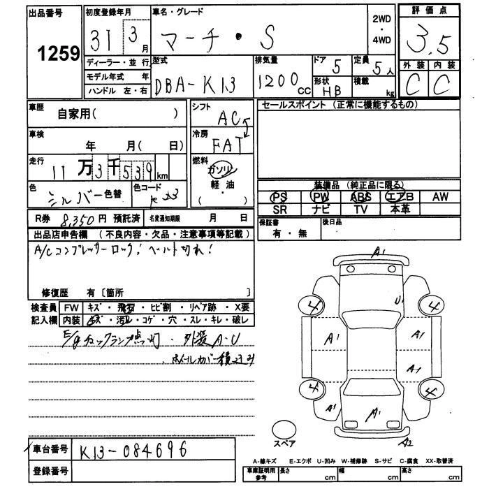 NISSAN MARCH 2019 г., лот № 1259