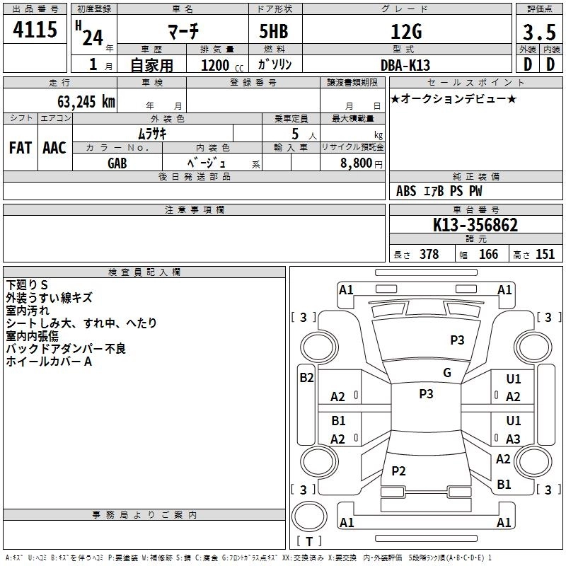 Год выпуска2012 Пробег 63 000 км КузовK13 Комплектация12G