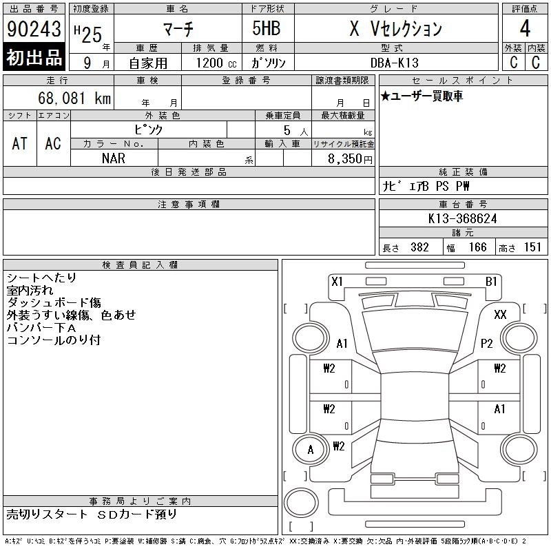 Год выпуска2013 Пробег 68 000 км КузовK13 КомплектацияX V SELECTION