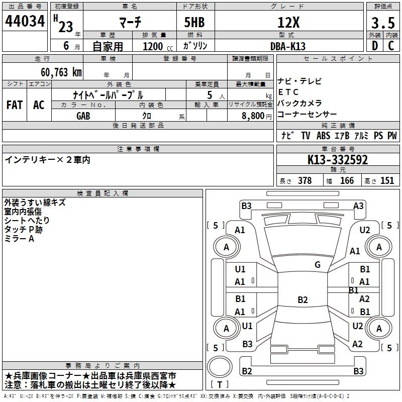 Год выпуска2011 Пробег 61 000 км КузовK13 Комплектация12X