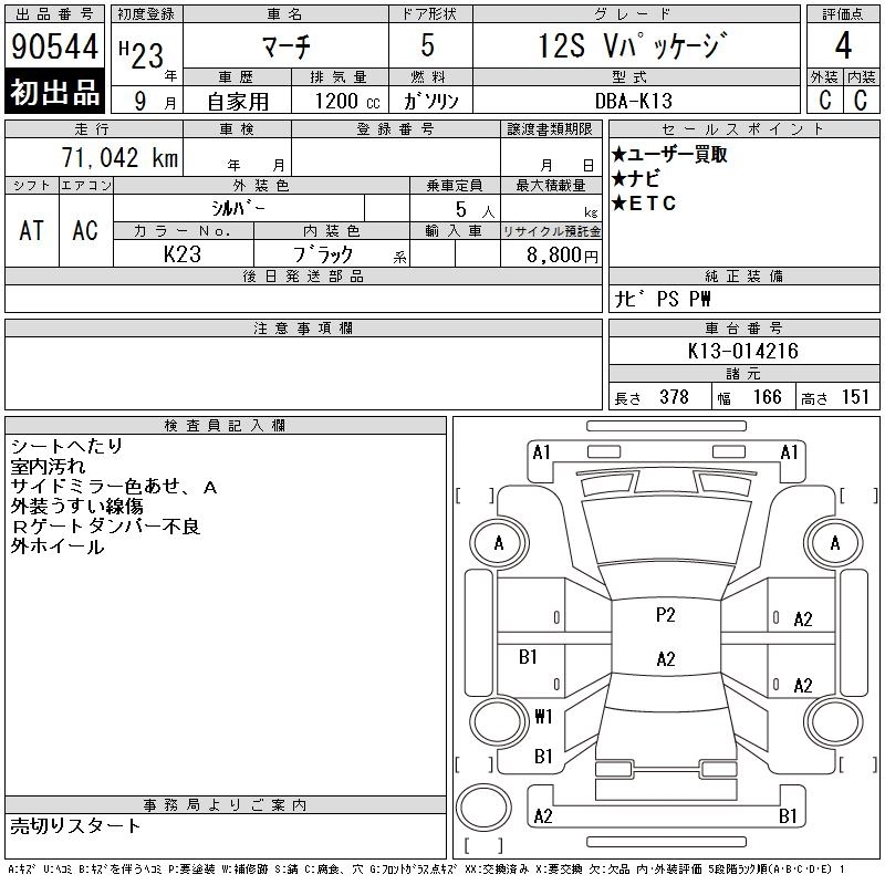 NISSAN MARCH 2011 г., лот № 90544