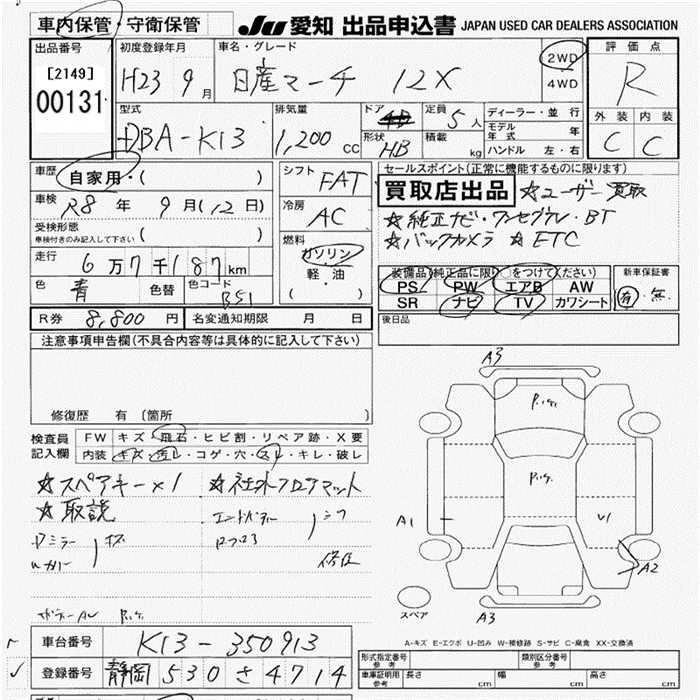 Статус выставлен на аукцион Лот 131 Аукцион JU Aichi Дата аукциона 12.03.2026