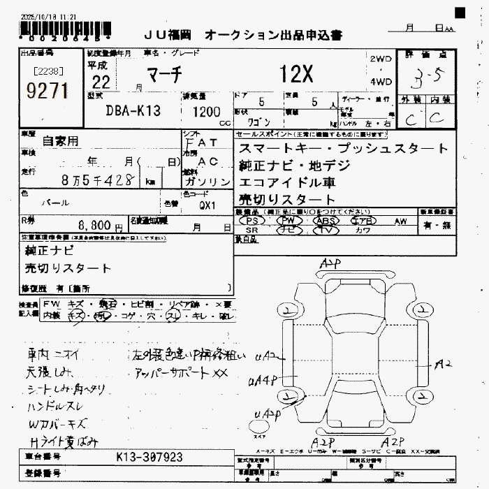 Статус выставлен на аукцион Лот 9271 Аукцион JU Fukuoka Дата аукциона 13.03.2026