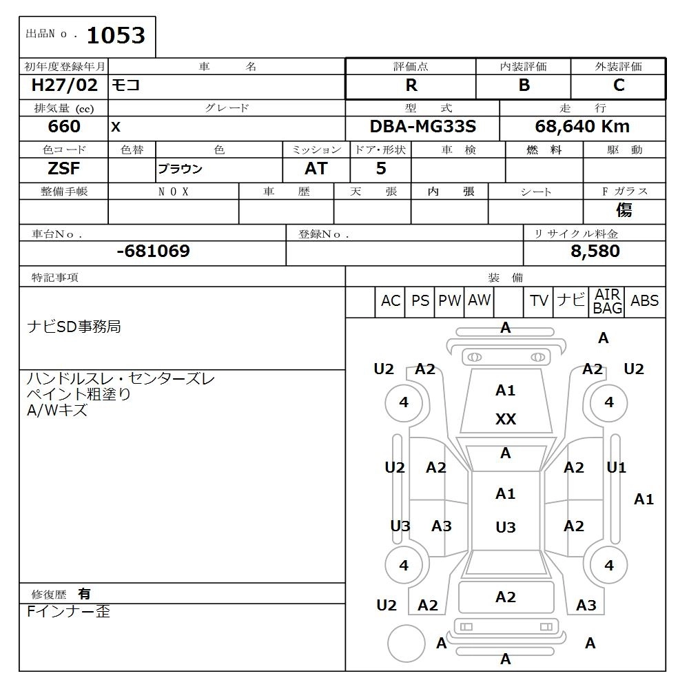 Статус продан Лот 1053 Аукцион Nissan Osaka Дата аукциона 08.12.2025