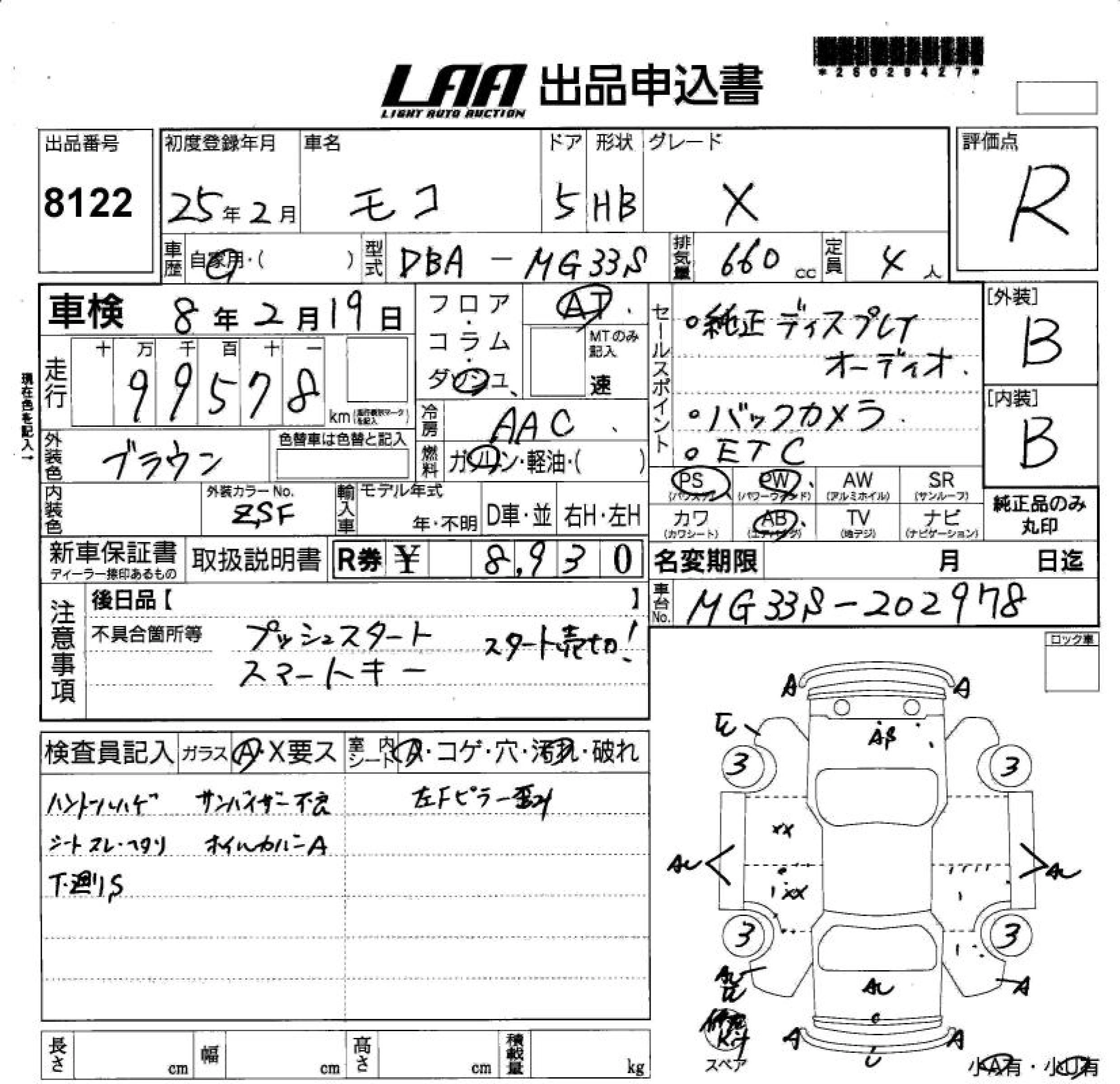 Статус выставлен на аукцион Лот 8122 Аукцион LAA Shikoku Дата аукциона 10.12.2025