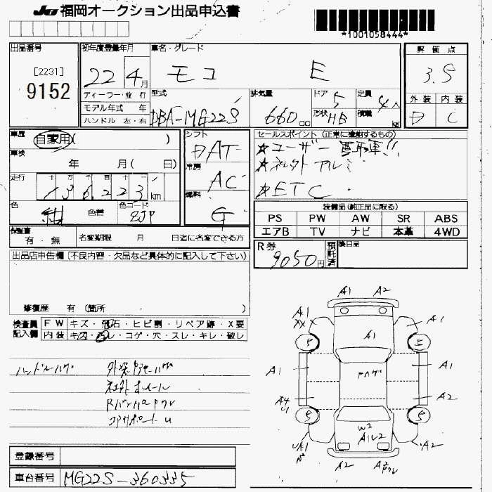 Статус не продан Лот 9152 Аукцион JU Fukuoka Дата аукциона 23.01.2026