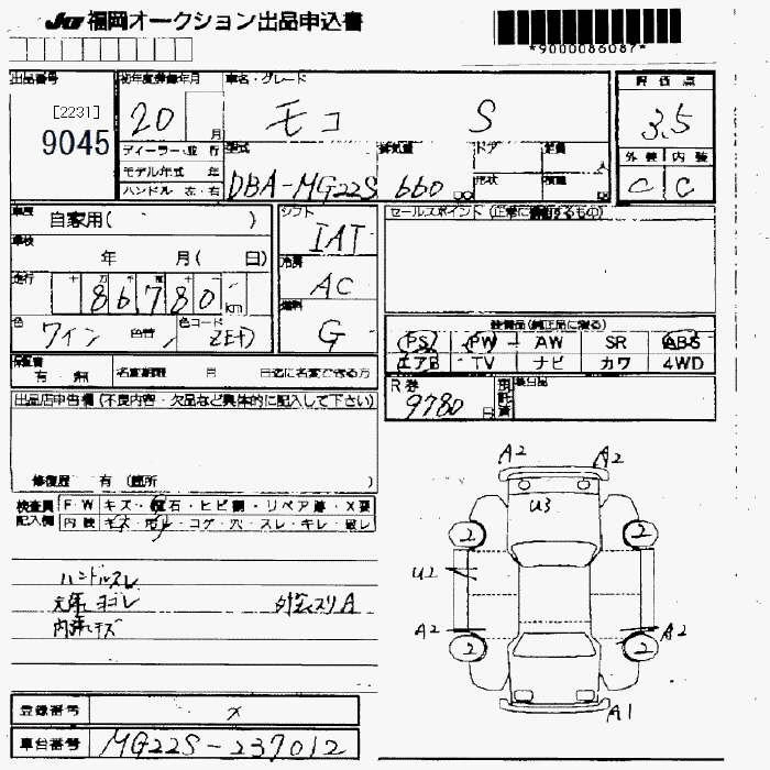 Статус не продан Лот 9045 Аукцион JU Fukuoka Дата аукциона 23.01.2026