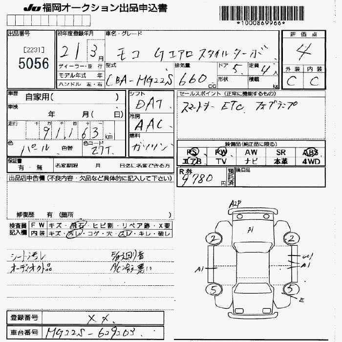 Статус не продан Лот 5056 Аукцион JU Fukuoka Дата аукциона 23.01.2026