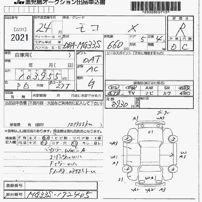 Статус не продан Лот 2021 Аукцион JU Fukuoka Дата аукциона 23.01.2026