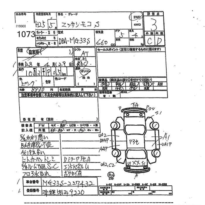Год выпуска2013 Пробег 104 000 км КузовDBA-MG33S КомплектацияS