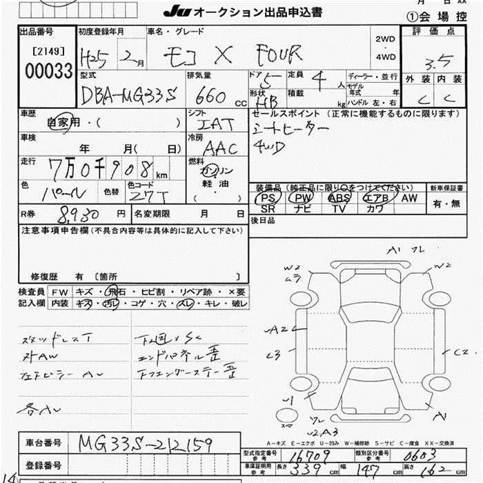 Статус выставлен на аукцион Лот 33 Аукцион JU Aichi Дата аукциона 12.03.2026