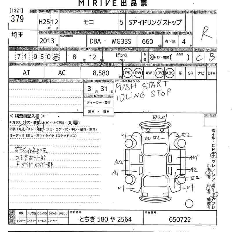Год выпуска2013 Пробег 72 000 км КузовMG33S КомплектацияS IDLING S TOP