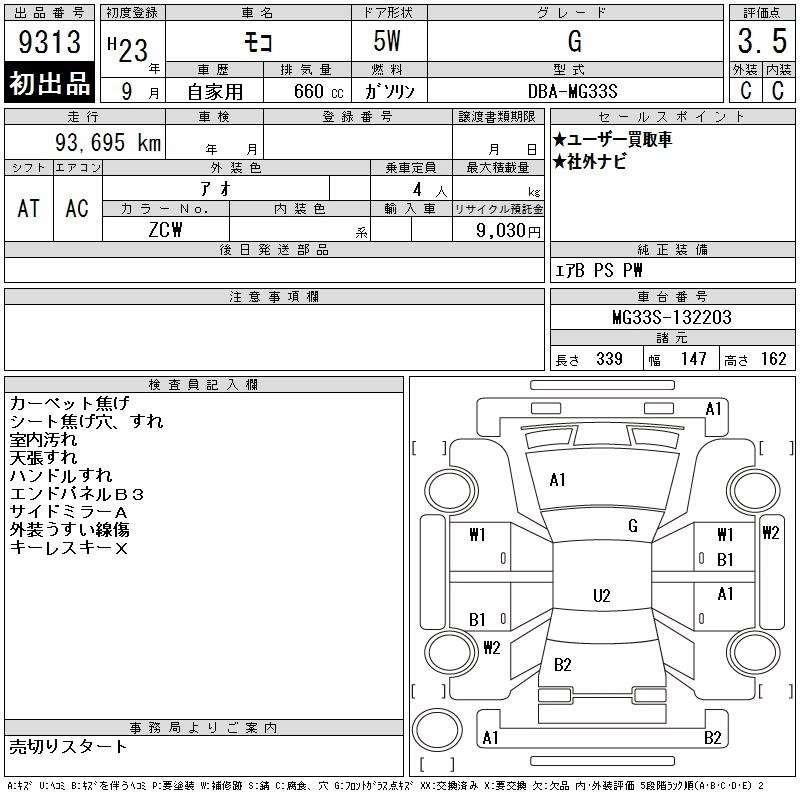 Статус выставлен на аукцион Лот 9313 Аукцион CAA Chubu Дата аукциона 11.03.2026