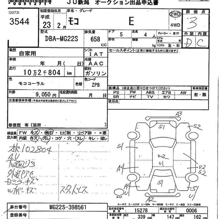 Статус не продан Лот 3544 Аукцион JU Niigata Дата аукциона 20.03.2026