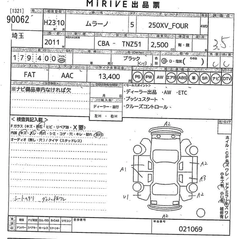 NISSAN MURANO 2011 г., лот № 90062